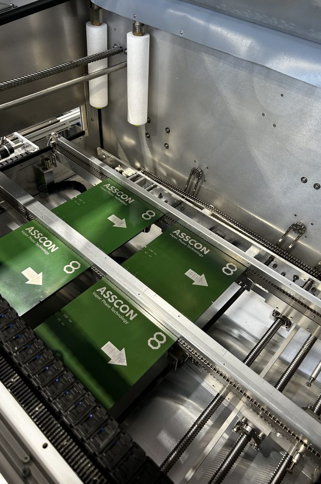 Volle Linienintegration und Verzicht auf Werkstückträger, darauf liegt der Fokus bei den ASSCON Dampfphasen-Inline-Lötsystemen. Die einfache Übergabe und Übernahme von Leiterplatten über Stiftketten zeichnen diesen Typ von Inline-Anlagen aus. Elektrisch breitenverstellbare Transportsysteme erlauben ein schnelles und unkompliziertes Anpassen an wechselnde Produkte und bieten so die heute in der modernen Elektronikfertigung nötige Flexibilität. Auch die Einbindung in Linienleitrechner ist möglich. Volle Automatisierung kombiniert mit höchster Qualität im Prozess ist hier der Leitsatz.